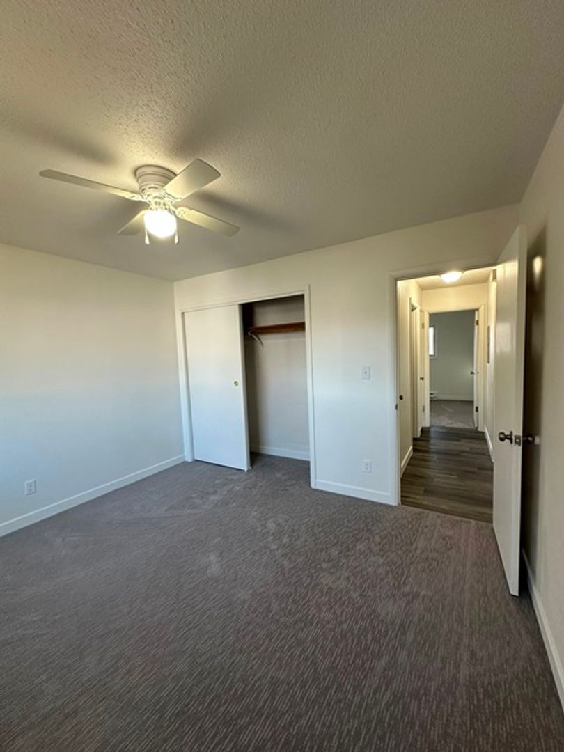 Updated 2 bedroom, 1 bathroom second floor end unit apartment in complex with a carport parking space (all other parking is unassigned). Unit has carpet and laminate flooring with updated countertops in kitchen and bathroom. Shared pay to use laundry room with additional storage space available (you will need your own pad lock). Absolutely no smoking in or around the home. Owner will consider one cat with an additional deposit, no dogs or caged animals. Must pass application process which includes a $35.00 per person application fee. Tenant responsible for Power. Owner pays water/sewer, garbage and landscaping.